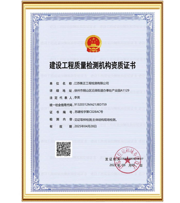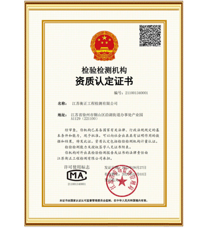 一家具有独立法人资格的第三方检测机构,主要经营范围包括公路、市政、建筑材料、地基基础、主体结构、钢结构、室内环境等工程质量检测
